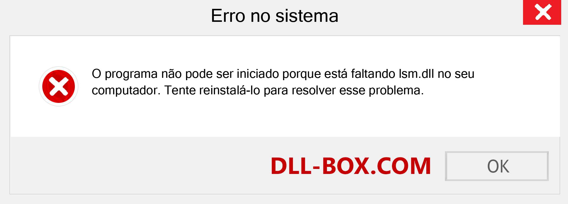 1. O programa não pode ser iniciado porque está faltando lsm.dll do seu computador. Tente reinstalar o programa para resolver este problema.
